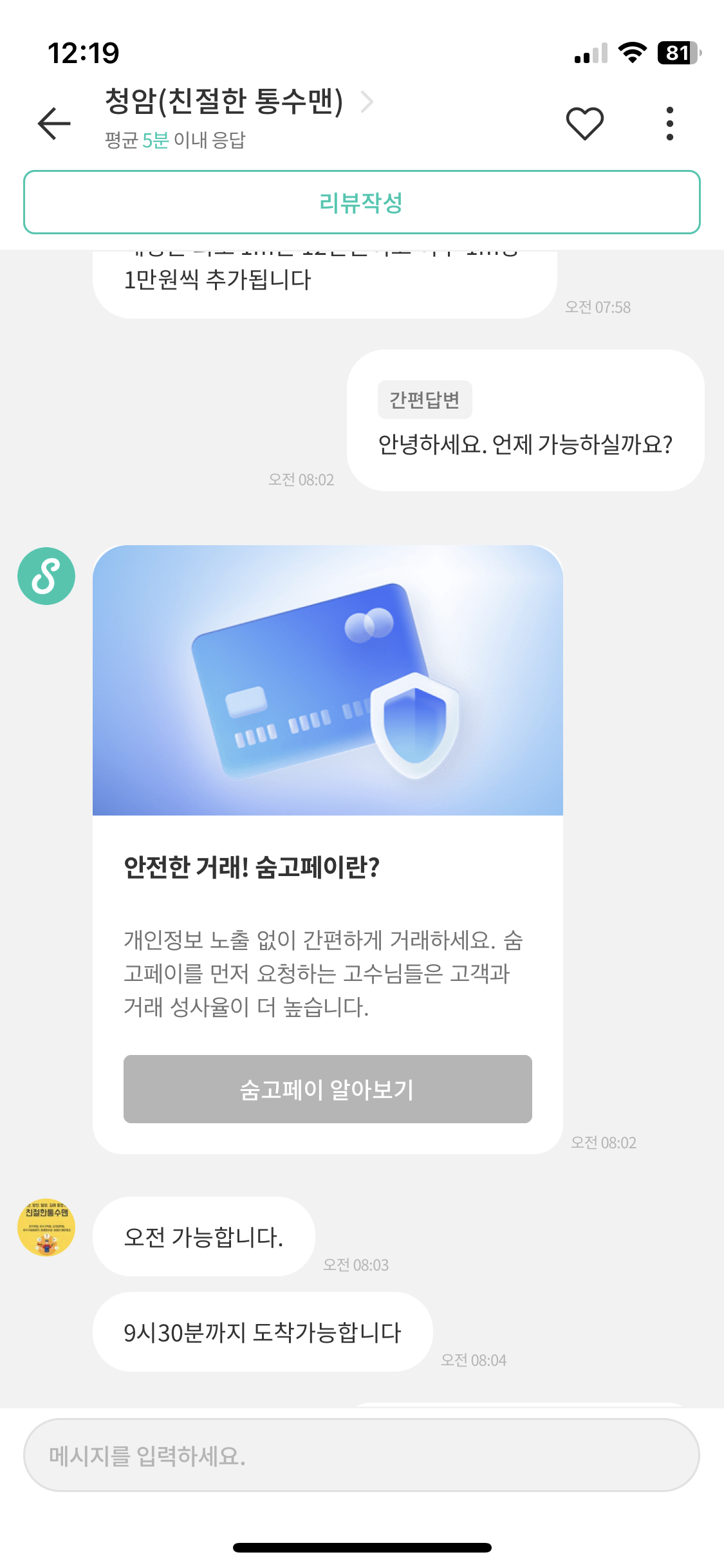 숨고 견적 중 가장 저렴한 곳으로 일단 커넥트 했다
