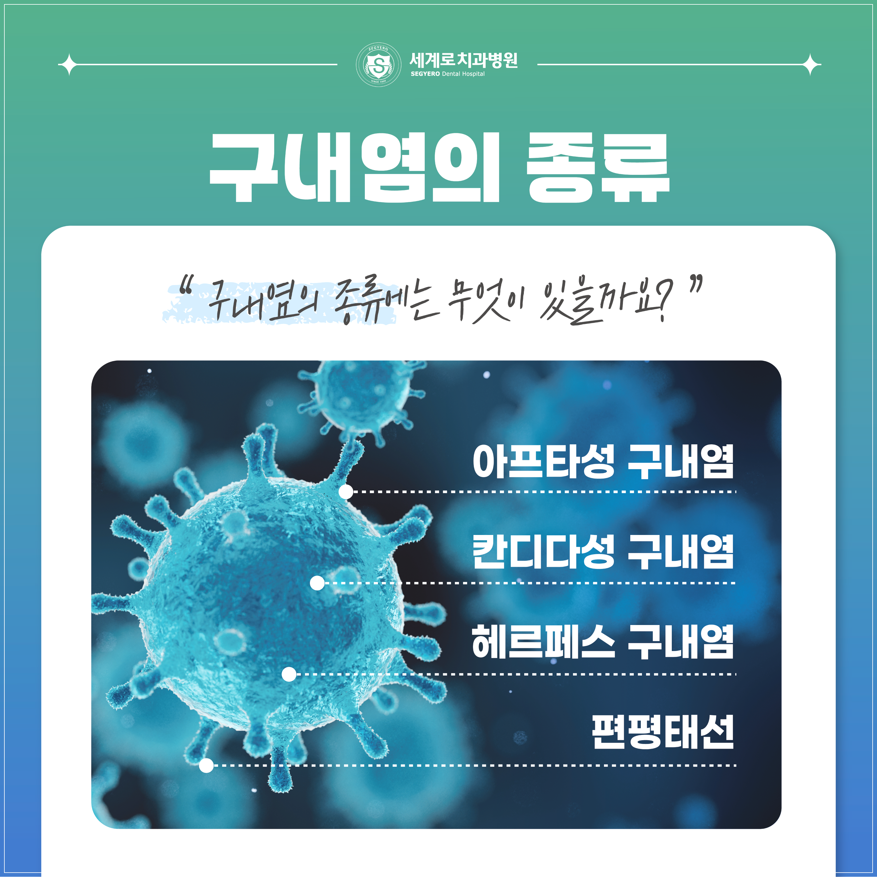 1. 아프타성 구내염: 우리가 흔히 알고 있는 구내염의 형태로, 입안 점막에 작은 원형 또는 타원형의 궤양이 생기며 통증이 동반됩니다. 대개 일주일 내 자연 치유되지만, 재발이 잦습니다.