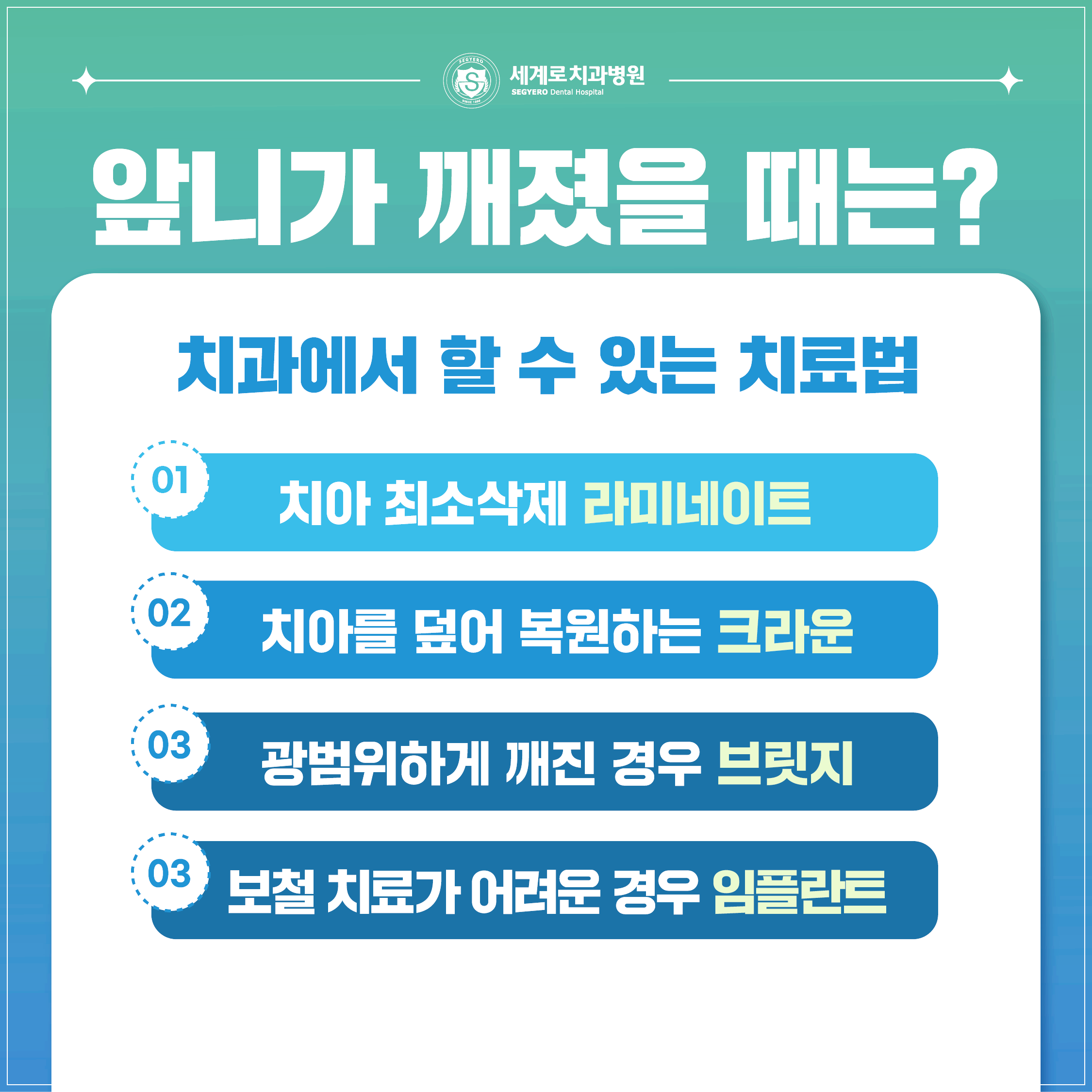 앞니가 갑작스럽게 깨지면 누구나 당황할 수 있지만, 이럴 때일수록 침착하게 대처하는 것이 가장 중요합니다!