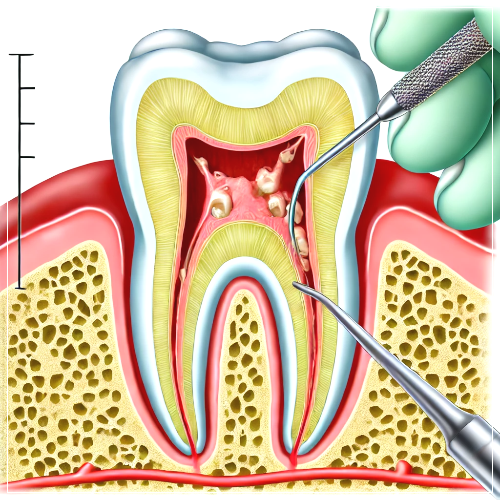 근관치료는 치아 내부의 염증, 세균, 오염된 신경 조직을 제거한 뒤, 그 빈 자리를 충전재로 채우는 치료입니다.